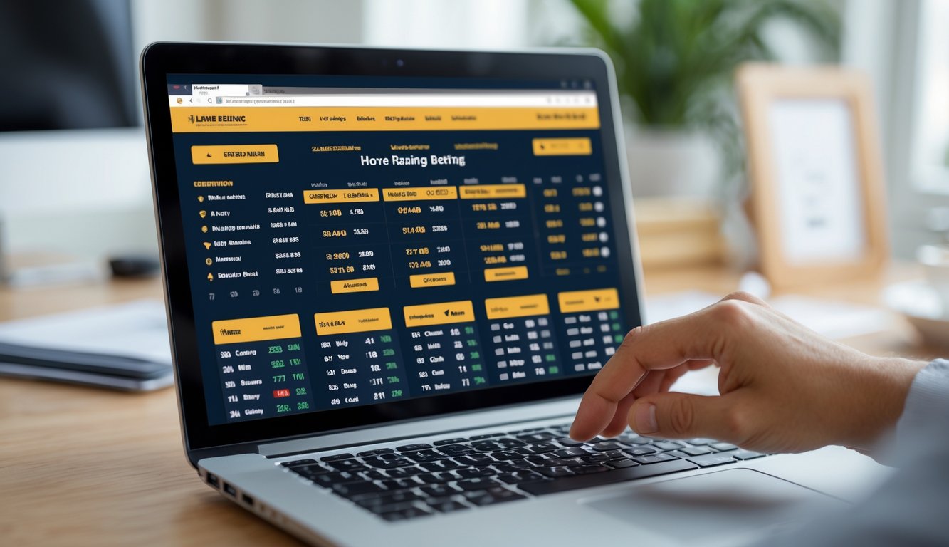 Seseorang menggunakan komputer dengan situs taruhan pacuan kuda online yang terlihat profesional di layar.